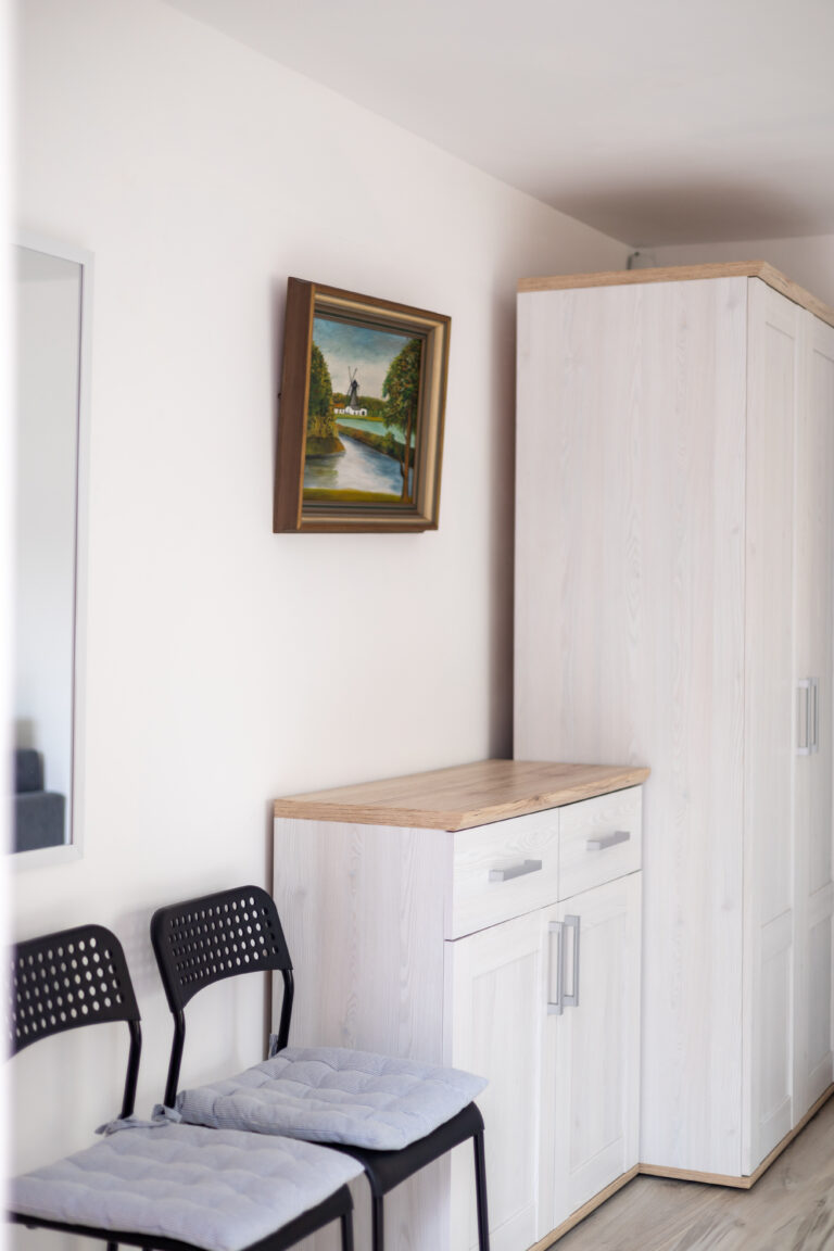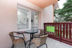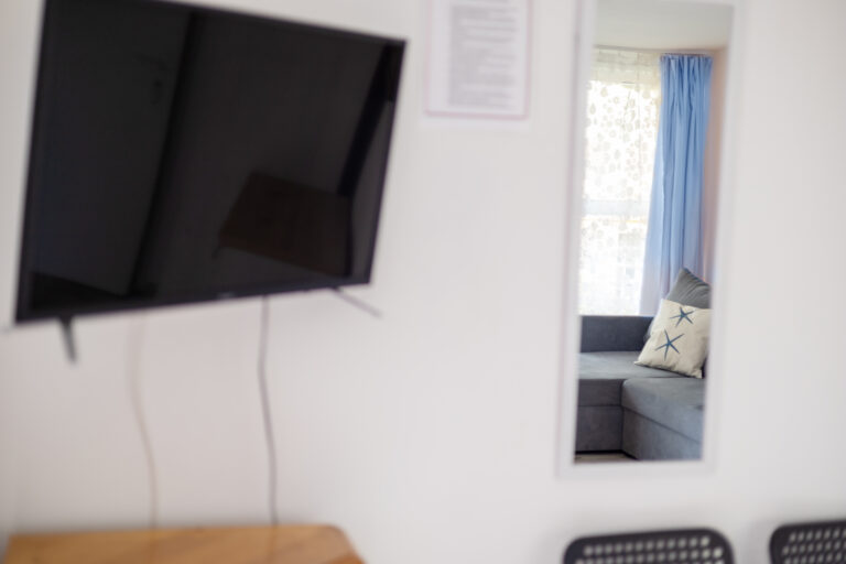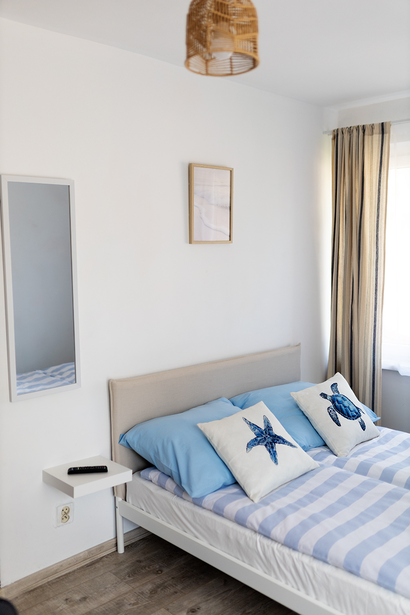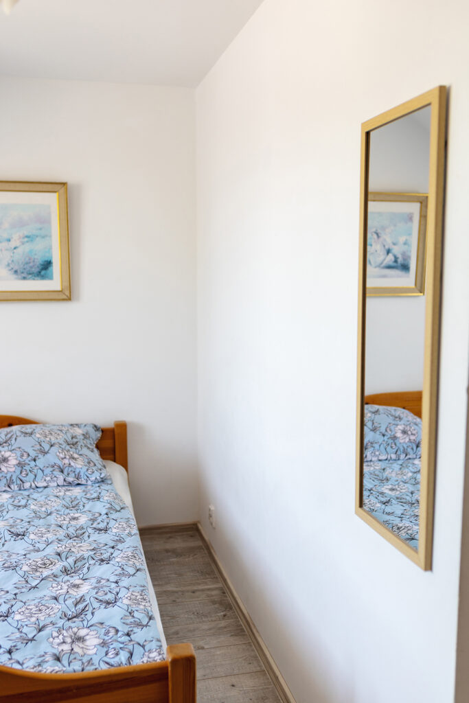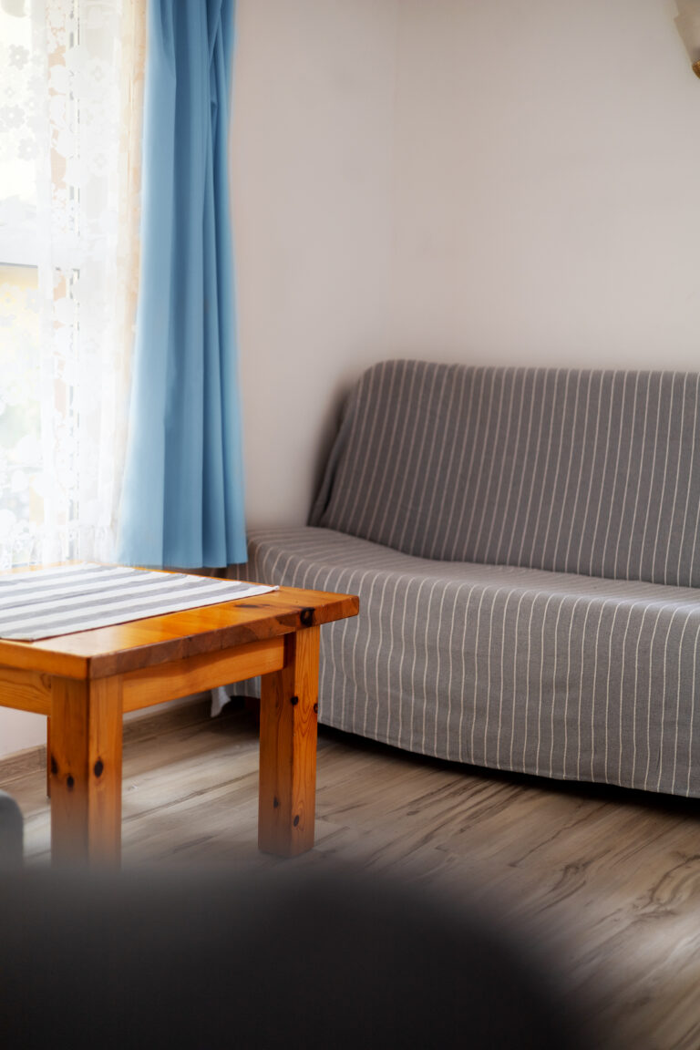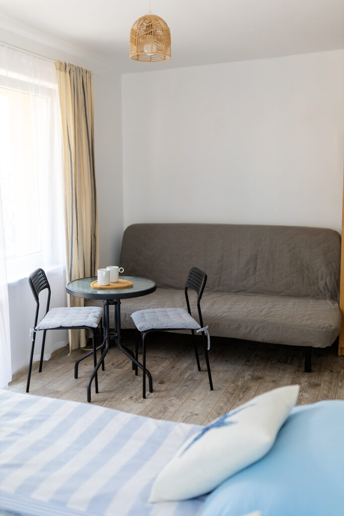 Do Państwa dyspozycji oddajemy pokoje 2, 3 i 4 osobowe jak również typu Studio dwupokojowe-siedmioosobowe (zdjęcia studia poniżej w galerii), z pełnym węzłem sanitarnym, wyposażone w TV, wi-fi, podstawowe naczynia i sztućce, czajnik elektryczny, lodówkę, leżaki, karimaty i parawan. Posiadamy dwa pokoje z balkonem i dwa z tarasem.