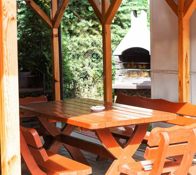 Murowany grill i sprzęt do grillowania.